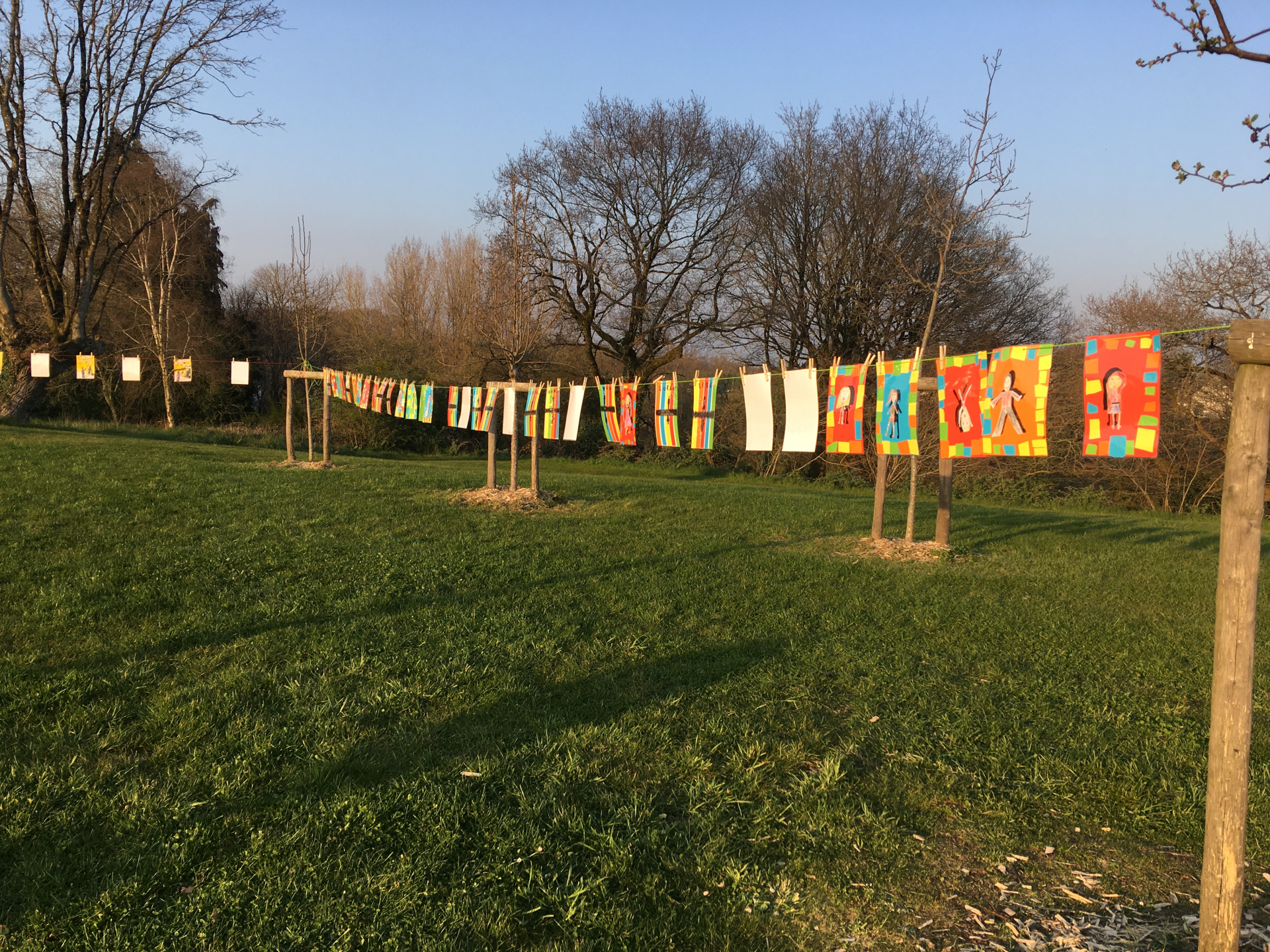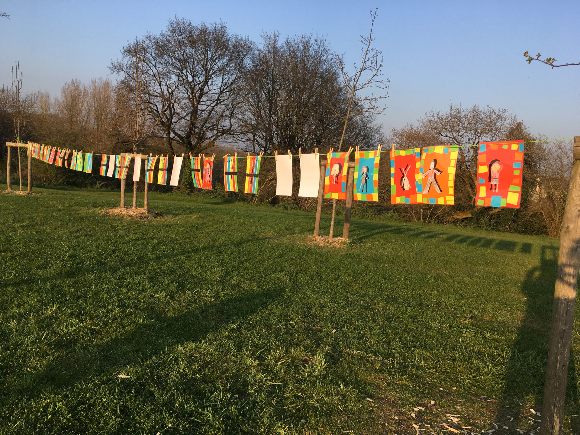 Lors de la soirée Portes Ouvertes, les visiteurs ont pu découvrir l’oeuvre réalisée par les élèves PS-MS et GS-CP dans le cadre du projet Poser-Superposer en collaboration avec Centre Morbihan Communauté, ainsi que les oeuvres réalisées par tous les élèves dans le cadre de l’opération artistique mondiale « La Grande lessive ».